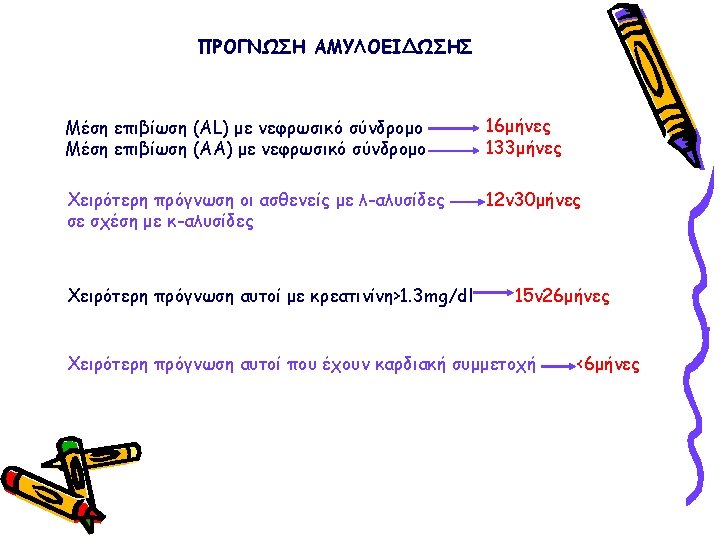 ΑΜΥΛΟΕΙΔΩΣΗ AL ΘΕΡΑΠΕΙΑ 15 years ago Melphalan+prednisone in repeated cycles over many months CR <5% Median survival from 8 -12 mo to 12 -18 mo Mid-1990 s Melphalan 140 -200 mg/m 2 (myeloablative doses) & Autologous stem cell transplantation Now HDM/SCT Tandem transplantation with a second course of HDM/SCT Oral melphalan (0. 22 mg/kg/d) +dexamethasone (40 mg/d) in 4 -day cycles each month CR 40% Median survival 4. 6 y Treatment-mortality 13%