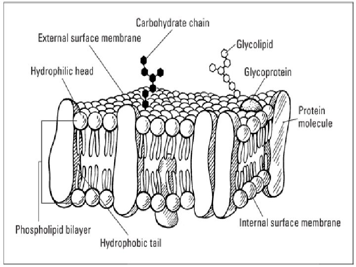 Fluid Mosaic Model: In the year 1972 Singer and Nicolson proposed a model for explaining the membrane structure, According to this model, cell membrane consists of a highly viscous fluid matrix of a bilayer of phospholipids having globular proteins associated with them. This model came to be known as fluid mosaic model. The phospholipid molecules in the cell membrane have their polar, hydrophilic heads towards outer surface and the nonpolar, hydrophobic tails towards inner surface. The proteins in cell membrane are of two kinds. Some of the proteins are found at the periphery, partly projecting out of the lipid layer. These are the peripheral proteins. These proteins can be easily extracted. Some of the protein molecules are found totally embedded in the phospholipid matrix. Those are the integral proteins, which represent nearly 70% of the membrane proteins. These proteins cannot be extracted. Some of the integral proteins have very large molecules that extend throughout the phospholipid matrix, projecting out on both surfaces.