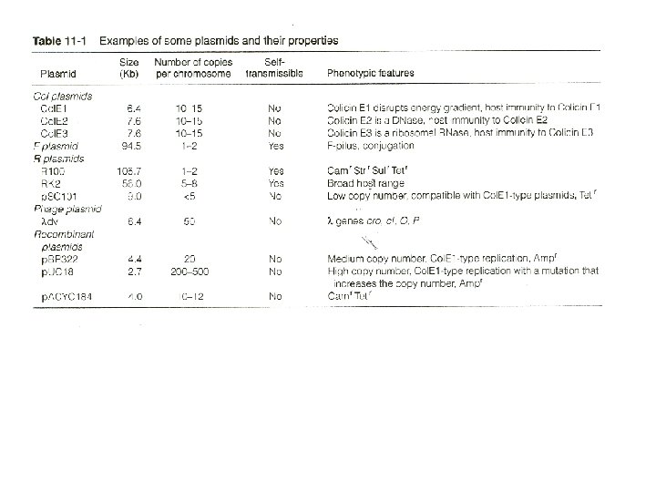 Incompatibility Groups 1. Not all plasmids can live together. 2. Plasmids that are able to coexist in the same cell do not interfere with each other’s replication 3. A single cell can have as many Inc group plasmids as it can tolerate and replicate! Partion Locus: a region on broad host range plasmids that binds to a structure on the inner membrane of the cell to ensure proper segregation. Plasmids labeled with fluorescent protein -move to each daughter cell during division. Pogliano, Joe et al. (2001) Proc. Natl. Acad. Sci. USA 98, 4486 -4491