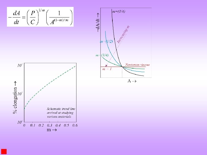 Further aspects regarding strain rate sensitivity q In some materials (due to structural condition or high temperature) necking is prevented by strain rate hardening. From the definition of true strain If m < 1→ smaller the cross-sectional area, the more rapidly the area is reduced. If m = 1 → material behaves like a Newtonian viscous liquid → d. A/dt is independent of A.
