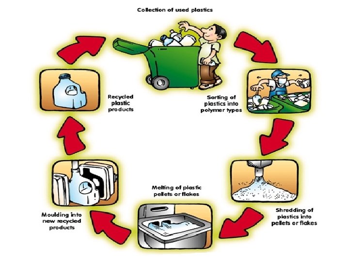 Coding of Plastics v Most plastic products are marked with a number code; a small number enclosed by the chasing arrows symbol; to identify the type of plastic used. v These codes were adopted by the Society of Plastic Industry (SPI) in 1988 to provide an industry wide standard that would make it easier to identify and sort recyclable plastic.
