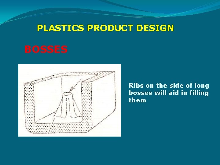 PLASTICS PRODUCT DESIGN BOSSES Design and proportions of boss at a wall, it is used in most thermoplastic materials