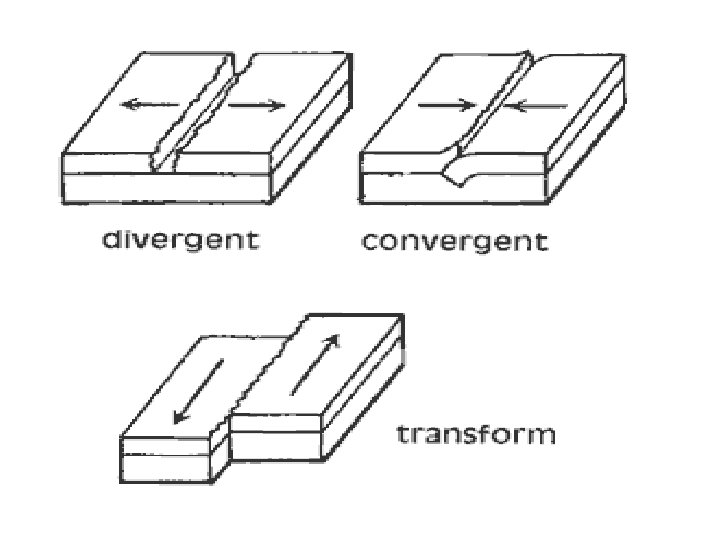 Faults and Plate boundaries Type of fault Description Boundary Type Compression Plates push together Normal- Plates pull apart Divergent Reverse- Convergent tension Strike-slip - Plates slide past Transform Shearing each other