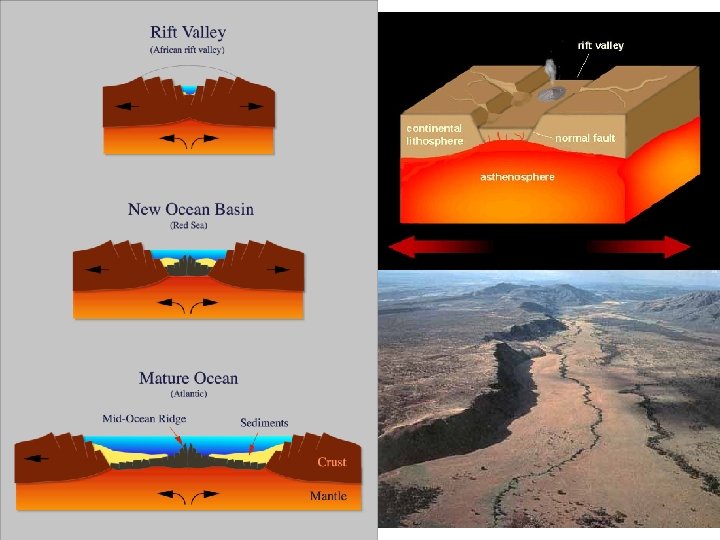 • On seafloor: • Oceanic crust separates • Creates ocean ridges and rift volcanism • On land: • Continental Crust separates • Creates Rift Valleys and rift volcanism • Ex. African Rift Valley and Iceland