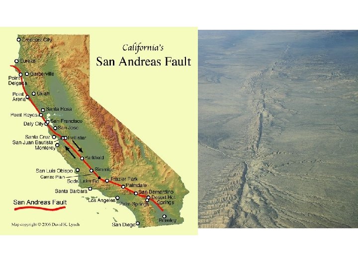 3. Transform • Strike-Slip • 2 plates slide past each other • Crust deformed or fractured as giant slabs of crust grind past each other • Causes earthquakes • Ex. San Andreas