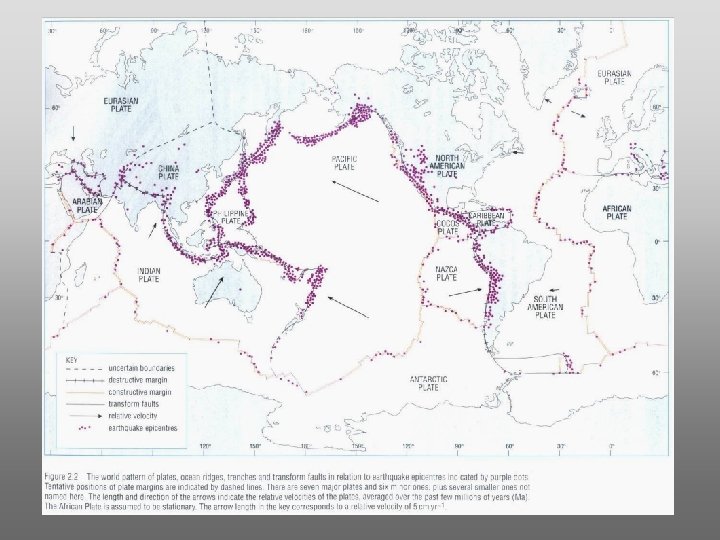 The Theory of Plate Tectonics (cont’d. ) Lithospheric Plates major plates: minor plates: 1. 2. 3. 4. 5. 6. 7. 8. Pacific – 105 x 106 km 2 Eurasian - 70 x 106 km 2 Antarctic - 60 x 106 km 2 Australian - 45 x 106 km 2 S. American - 45 x 106 km 2 African - 80 x 106 km 2 N. American - 60 x 106 km 2 Cocos - 5 x 106 km 2 Phillipine - 6 x 106 km 2 Caribbean - 5 x 106 km 2 Nazca - 15 x 106 km 2 Arabian - 8 x 106 km 2 Indian - 10 x 106 km 2 Scotia - 5 x 106 km 2 Juan de Fuca - 2 x 106 km 2