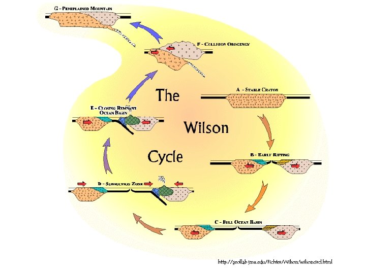 The Wilson Cycle uses plate tectonic processes to show development and creation of ocean floor and ocean basins;