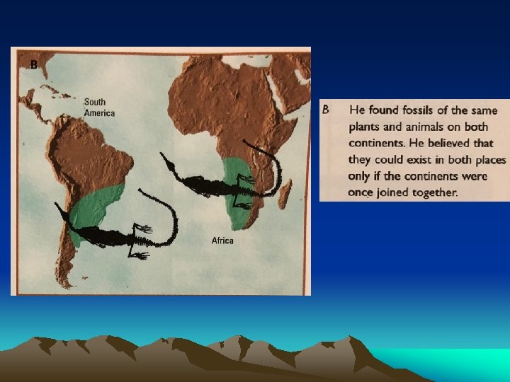 Continental Drift • In 1915, Alfred Wegener, a German scientist, stated that all of the Earths land masses are constantly in motion. He also stated that 300 million years ago all they collided to form one supercontinent. He called it Pangaea. • Wegener tried to prove his theory of continental drift using 4 ‘proofs’.