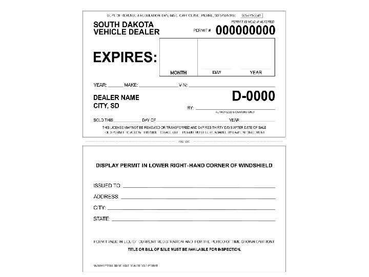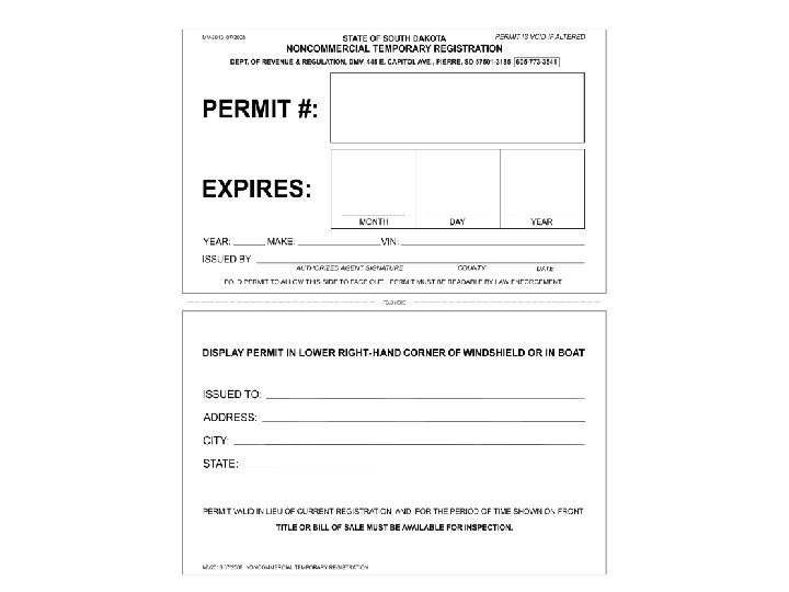 Permits • Existing plates may not be attached prior to registration. • A permit must be obtained if a newly purchased and yet unregistered vehicle is to be driven.