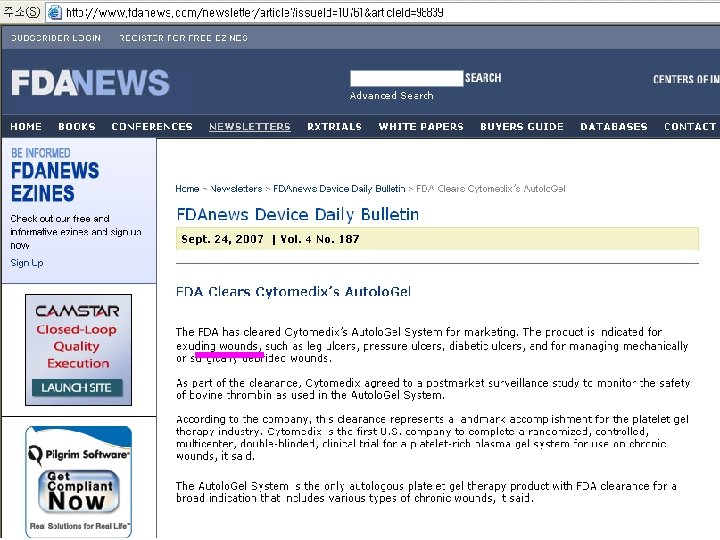 Platelet gel의 임상적 적용 Urology: Hemi-Nephrectomy Retroperitoneal Tumor Radical Retropubic Prostatectomy Major Vascular Surgery: Abdominal Aortic Aneurysm/AFB Carotid Endarterectomy Vascular Access Grafts Cardio-Thoracic Surgery: Coronary Artery Bypass Grafting (CABG) Valve Repair/Replacement Bronchopleural Fistula Aneurysm Repair Sternal Repairs Cardio-Thoracic Redo Surgery Chronic Wounds: Decubitis Ulcers Venostasis Ulcers Diabetic Foot Ulcers Spider Bites