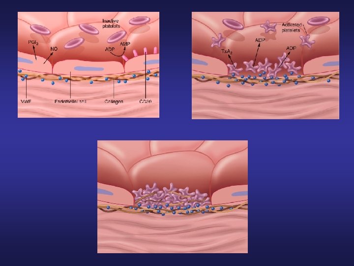 1. Adhesion Platelet Endothelium 2. Shape change 3. Aggregation