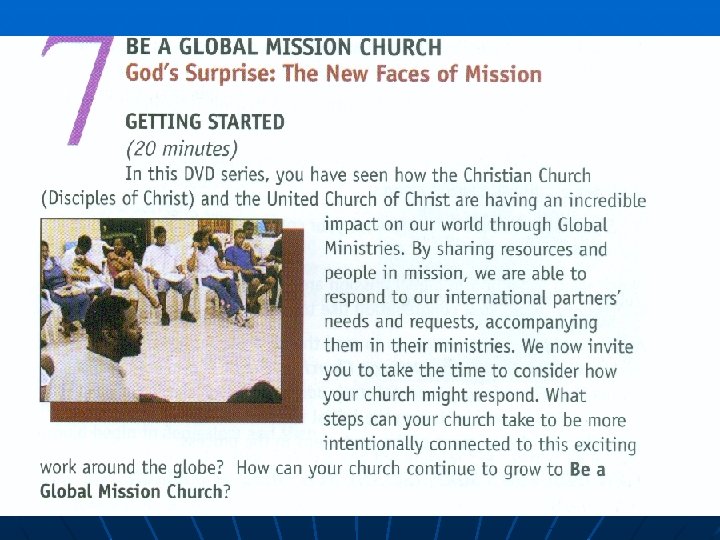 Discussion Questions v. How is “missionary defined in the DVD segment? v. What were some of the missionaries’ “surprises”? v. How did each one learn from their “surprises”? v What does “call” mean? v Have you ever felt “called by God”? v Are you surprised to learn that missionaries are sent only upon the request of Global Ministries’ international partners?