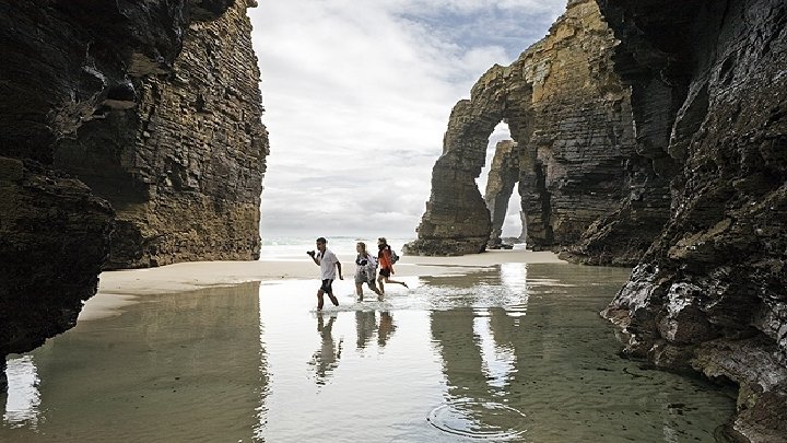 PLAYA DE LAS CATEDRALES Ribadeo - España Die Kathedralen Beach liegt an der Küste der Provinz Lugo -Galizien Nordspanien. Sie wurde für die Gruppe von Felsen so benannt, davon sind einige mehr als 32 Meter hoch, die Wind und Meer geschaffen hat.