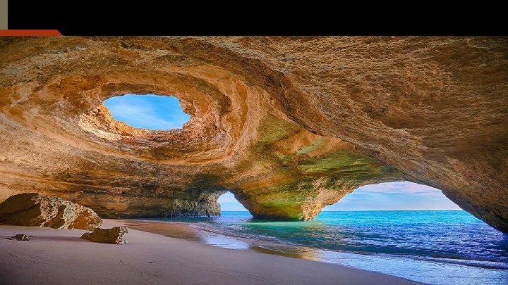 UNA GRUTA EN BENAGIL EL ALGARVE - PORTUGAL Die Algarve-Küste besteht aus Kalkstein, die leicht erodiert wird und atemberaubenden Meereshöhlen bildet. Wie diese hier die nur vom Meer erreichbar ist.