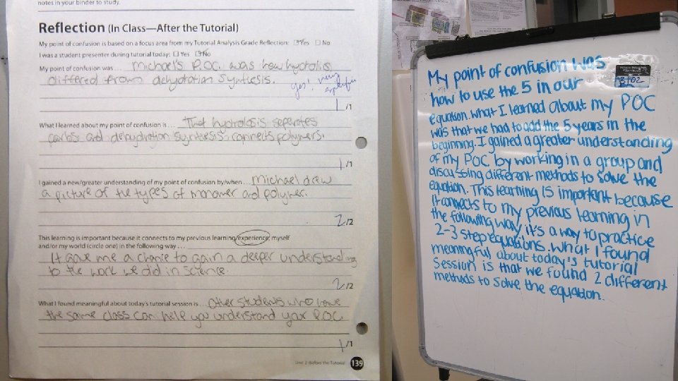 REFLECTION EXAMPLES • What I found meaningful or important about today’s tutorial session is… – I now understand the difference between supplementary and complementary angles. – I will be prepared for the test on the Civil War this Thursday. • One thing my group did well was… – Find resources to help each presenter. – Keep each other on-task. • One thing we can improve is… – Bringing notes that go with our POC. – Minimizing the side conversation. • Types of strategies that were useful when completing this tutorial… – Was using the substitution method instead of the elimination method. – Sam helped Cindy with causes of the American Revolution and Harry talked about effects of the American Revolution.