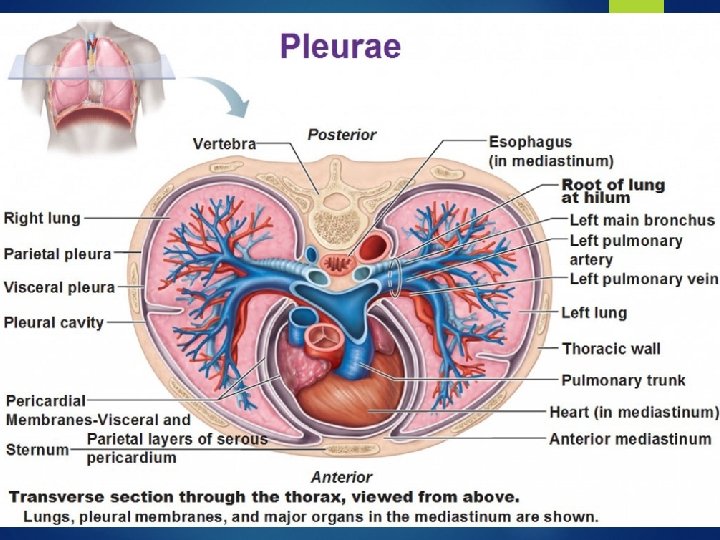 Pleura Serous fluid that allows for the parietal pleura (outer lining) and visceral pleura (inner lining) to glide over each other without separation contains about 5 -15 ml of fluid at one time Pleural fluid is produced by the parietal pleura and absorbed by the visceral pleura as a continuous process. The visceral pleura absorbs fluid, which then drains into the lymphatic system and returns to the blood about 100 -200 ml of fluid circulates though the pleural space within a 24 -hour period