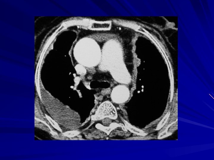 Mediastende mi, akciğerde mi? Mediastinal kitle Akciğer kitlesi Hava bronkogramı (-) Hava bronkogramı (+/-) Mediasten kenarı ile açı geniş Mediasten kenarı ile açı dar Mediastinal çizgilerde bozulma (+) Mediastinal çizgilerde bozulma (-) Spinal veya sternal anormallik olabilir Spinal veya sternal anormallik beklenmez