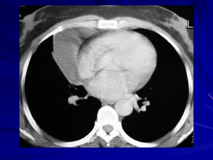 Diyaframla temas eden sık ön mediastinal kitleler Epikardiyal yağ yastığı (genellikle düşük dansitede) Morgagni hernisi (gaz varsa, tanısal) Perikardiyal kist Epikardiyal yağ yastığı