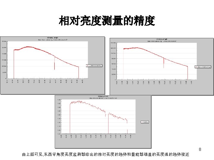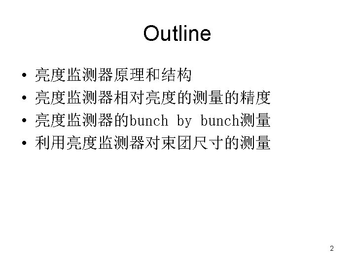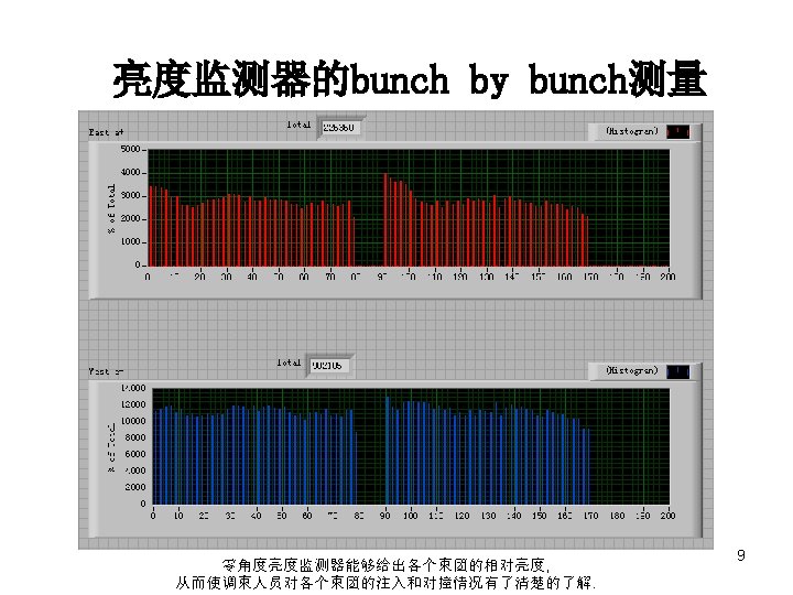 相对亮度测量的精度 the counting rates and their errors due to different thresholds in SBBS (I+=5. 11 m. A, I-=5. 00 m. A) Thr. (m. V) 100 200 300 400 500 600 800 1000 1200 1400 25991 19946 16245 13535 11281 9226 6036 3305 1509 649 25992 19946 16245 13535 11281 9226 6036 3305 1509 649 161 141 127 116 106 96 78 57 39 25 857 575 420 306 250 192 120 58 17. 5 0 29 24 20 17 16 14 11 8 4 0 31775 24413 19914 16628 13853 11335 7414 4064 1866 811 204 179 161 147 134 121 98 72 49 25 0. 0081 0. 0092 0. 0102 0. 0111 0. 0121 0. 0134 0. 0166 0. 0222 0. 0326 0. 0081 According to the table above the error of relative luminosity with threshold of 400 m. V and the pair of bunches currents of 5× 5 m. A 2 is about 0. 9%. 7