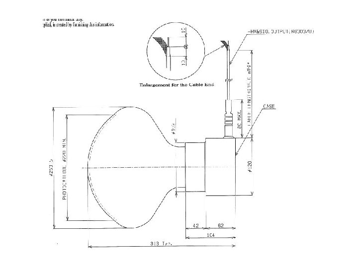 PMT arrangement with signal connector(34 SHV 50 -0 -1) on the turn table Pmt single cable 60 mm 900 mm SHV RF adaptor mountable hole 253 mm