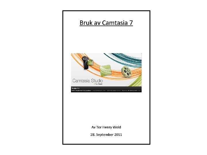 Slik gjør vi det • Programvaren Camtasia Studio (alle undervisningsrom+mitt kontor) • Trådløs mikrofon • • • Åpne Power. Point – Camtasia åpnes Kan også ta opp alt som foregår på skjerm To knapper for å starte opptak Lagre ved forelesningsslutt Konvertere til ønsket filformat (mp 4, mp 3, …. )