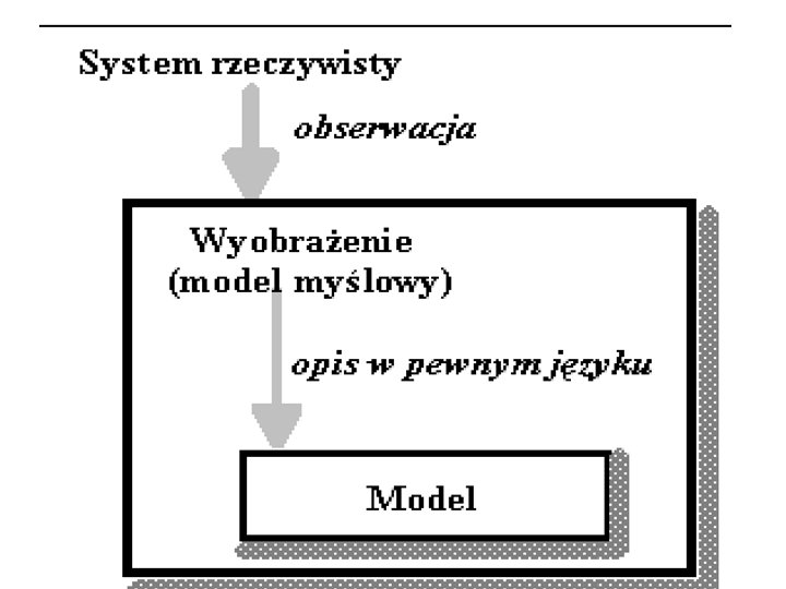 Model - rodzaje • modele fizyczne (np. model samolotu, model systemu w zmniejszonej skali) • modele schematyczne (diagramy, mapy, schematy) • modele symboliczne (modele oparte na zapisie matematycznym oraz algorytmicznym)
