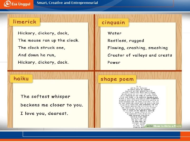 LEARNING OUTCOME • Students are able to elaborate ways to write poems.