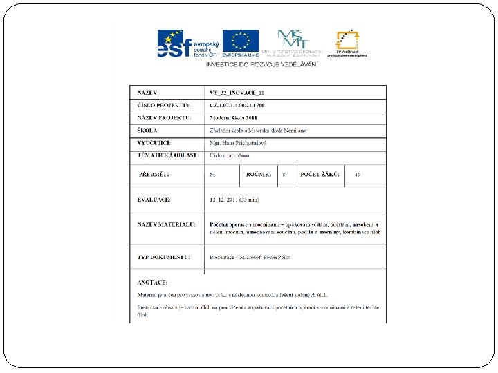 POETN OPERACE S MOCNINAMI Opakovn stn odtn nsoben