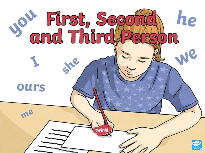 First, Second or Third Person? Decide if the following sentences are in the first, second or third person. Sophie was going to the cinema to meet her friends. I couldn’t believe what I was seeing – it was incredible! Third person First person “Where shall we go now? ” wondered Tim and Holly as they sat in their car. Third person Do you believe in ghosts? Well after reading this story, you will! Second person As I walked into my new school, my stomach churned and my hands began to shake. First person Are you an early bird or are you a night owl? Second person