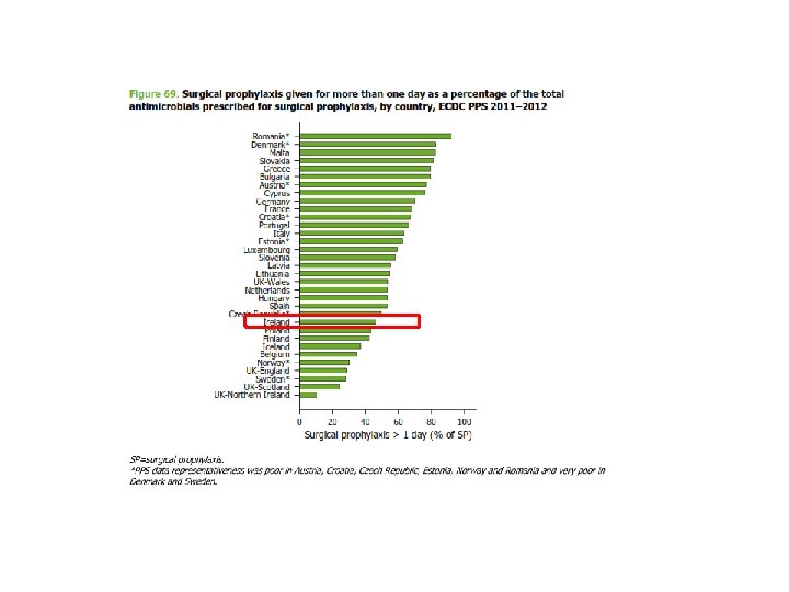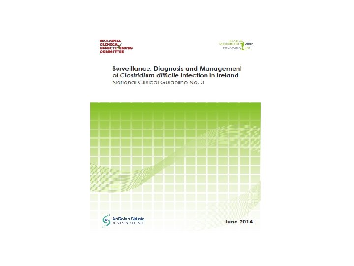 ECDC 2012 PPS: Ireland • 50 acute hospitals (42 public & 8 private) • 9, 030 patients • 501 active HAI (5. 2%): • • • SSI – 18% Pneumonia – 17% UTI – 15% BSI – 13% & of those, 42% were vascular catheter related CDI – 6% • 4, 532 antimicrobial prescriptions (34%): • • • 63% IV 78% treatment of infection 11% surgical antimicrobial prophylaxis, of which 47% >24 hrs 8% medical prophylaxis Documented indication in 83%