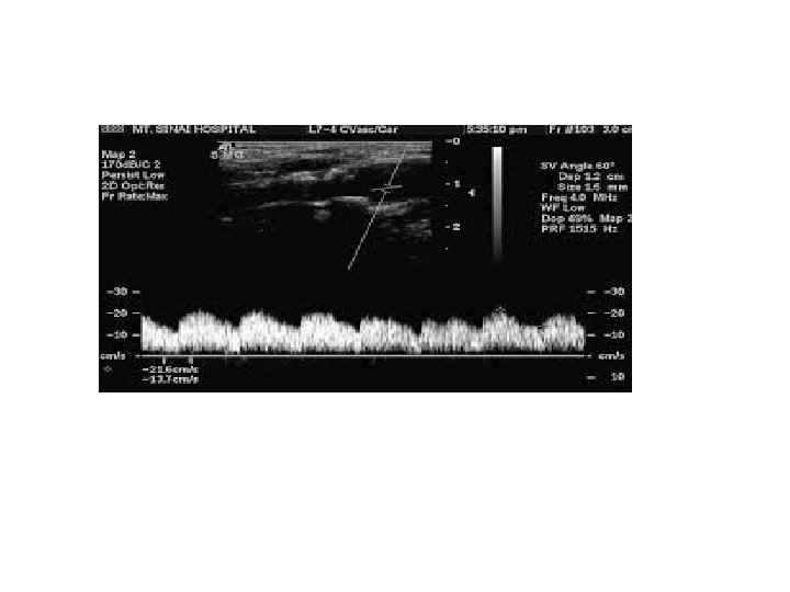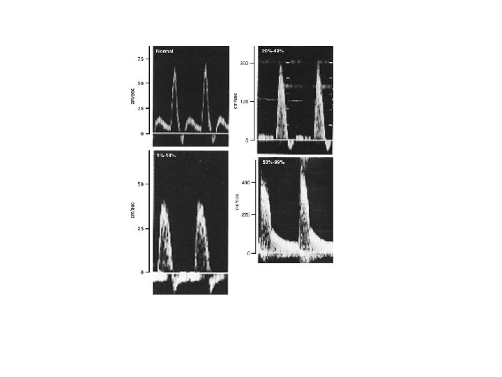 Additional Notes: • Flow to a cool extremity (vasoconstriction) will have pulsatile signals • Flow to a warm extremity (vasodilatation) will have continuous, steady signals. • Pulsatility changes do not differentiate well between occlusion and severe stenosis • Waveforms may not be altered in the presence of good collateralization. • Distal effects of obstructive disease may be only detectable following stress (i. e. , exercise or hyperemic evaluation)