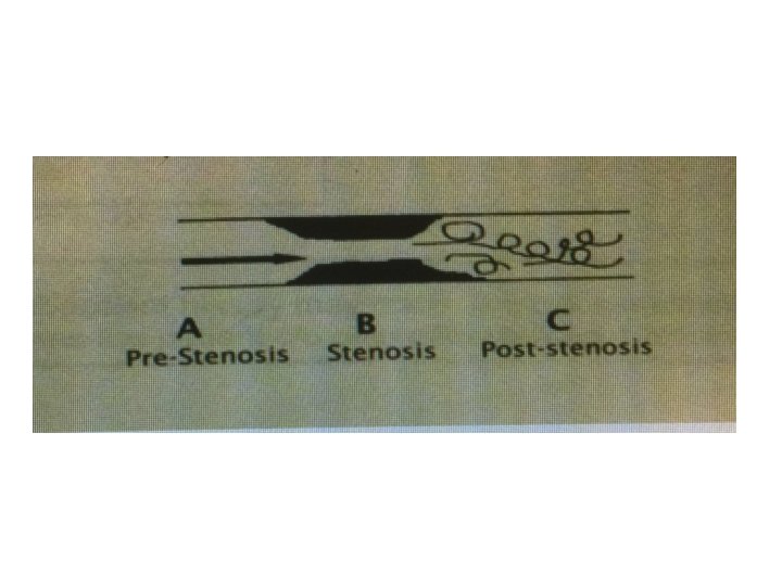 C. Post – Stenotic turbulence – At stenosis exit, flow reversals, flow separations, vortices/eddy currents occur near edge of flow pattern. – Flow equality is comprised of multiple changes in direction and spectral broadening. – Energy expended in the form of “heat” as eddys and vortices work against blood viscosity.