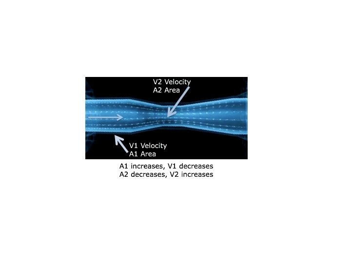 Velocity Changes • The law of conservation of Mass explains the relationship between velocity and area: Q=Ax. V Q is flow A is area V is velocity As area increases, velocity decreases As area decreases, velocity increases