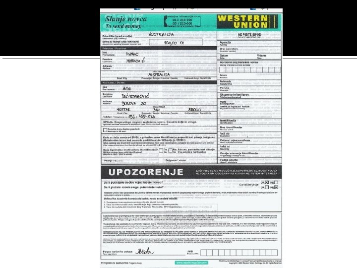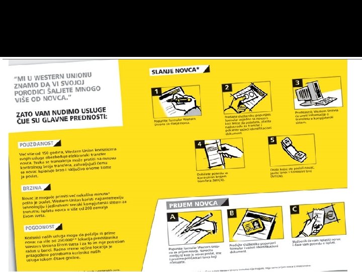 Prijem novca 3. Predati svoju važeću ličnu ispravu i sačekati obrazac za potpis. Šalterski službenik će isplatiti novac i dati potvrdu o isplati.
