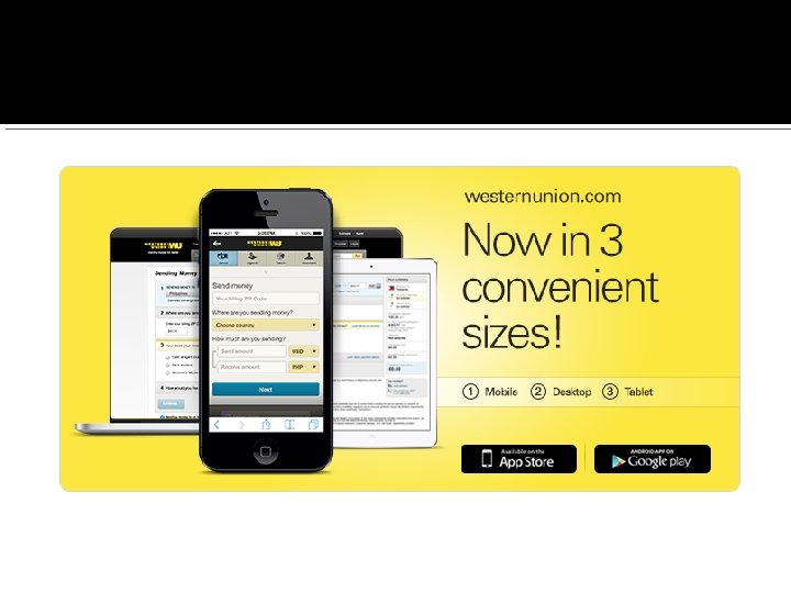 svetski lider u elektronskom transferu novca sa tradicijom poslovanja dužom od 135 godina dostupan na preko 400. 000 zastupničkih lokacija u više od 200 zemalja i teritorija sveta