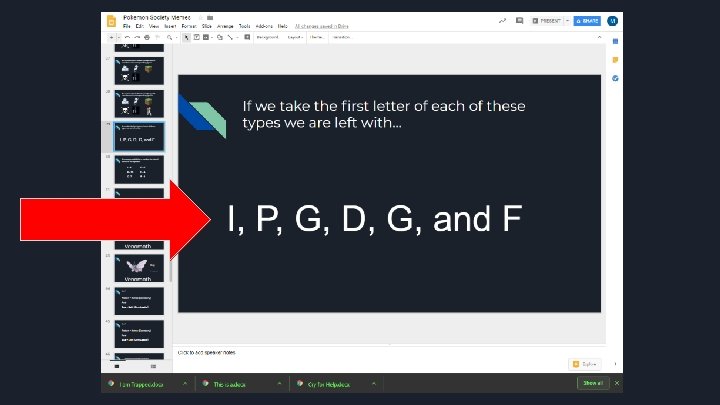 If we take the first letter of each of these types we are left with. . . I, P, G, D, G, and F