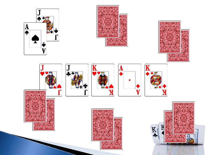 Basic Vocabulary � Blinds: the forced bet that rotates around the table. Each hand has 2 blinds: small and big � The Pot: Whatever money is at stake over the current hand � Bet: To put an amount of money in the pot � Raise: To bet more than the person before you bet � Call: To agree to the bet that was made � Fold: To surrender your cards and not put any more money in the pot � All In: To bet or raise for all the chips you have in front of you