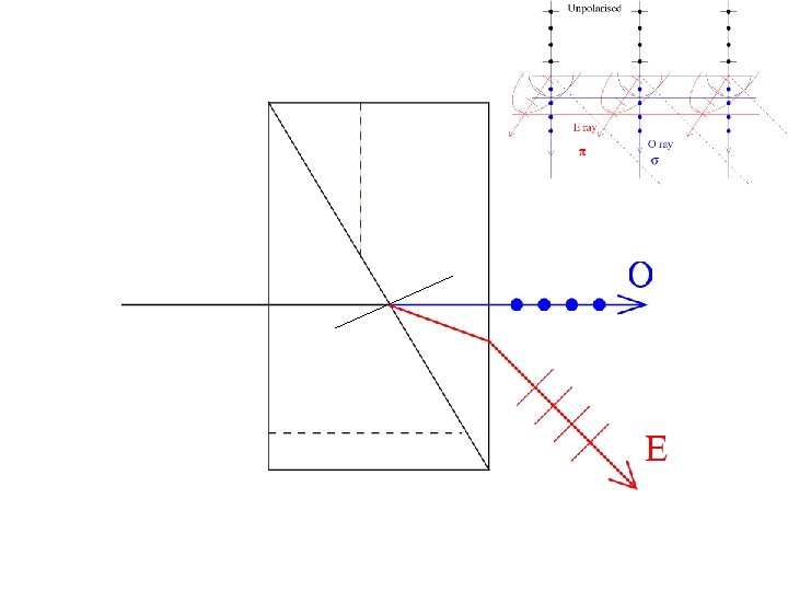 Linear polarisation by double refraction Positive and Negative uniaxial crystals Quartz - no = 1. 5443 Positive ne = 1. 5534 For sodium D lines (ne - no)>0 ne > n o ve < vo Calcite - Negative (ne - no)<0 ne < n o no = 1. 6584 ne = 1. 4864 v > v e o Velocity or Refractive index is the same along the OPTIC AXIS for o-ray and e-ray.