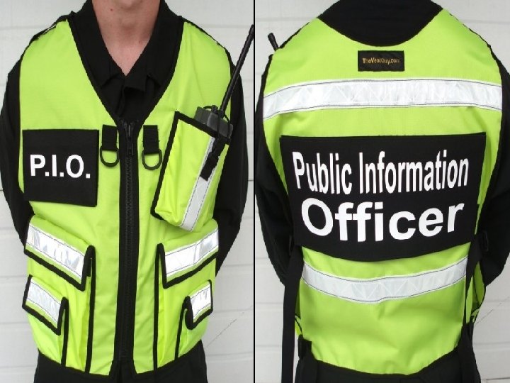 SELECTION OF PIO – Cont’d • The PIO must be trustworthy. He/she should possess good public speaking and writing skills • A PIO cannot be a “clock watcher” since any day could be longer than 8 hours • Investigative experience adds to any PIO’s credibility