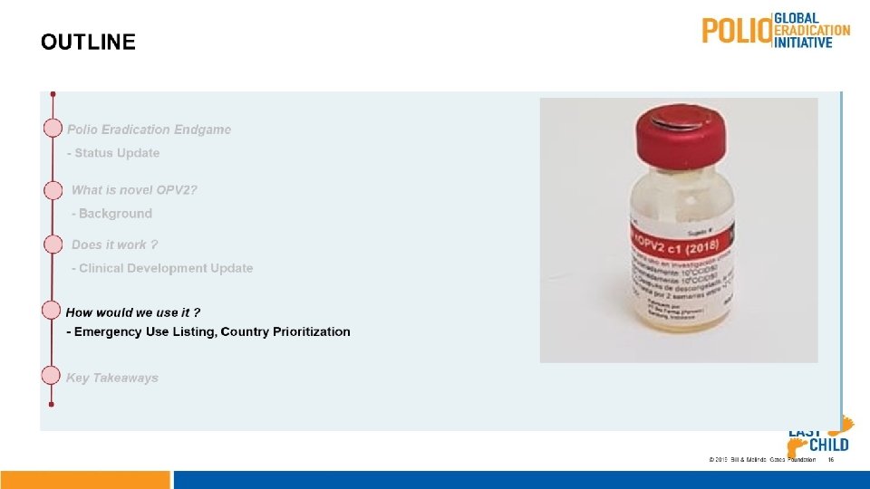 OUTLINE Polio Eradication Endgame - The VDPV conundrum What is novel OPV 2? - Background Does it work ? - Clinical Development Update How would we use it ? - Emergency Use Listing, Country Prioritization Key Takeaways
