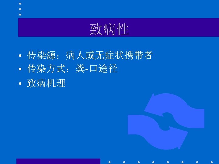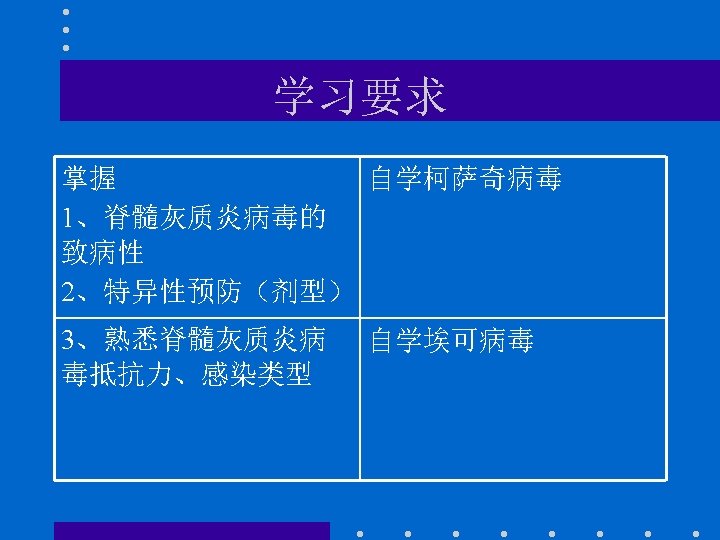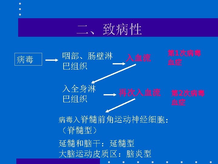 预防 • 口服脊髓灰质炎减毒活疫苗糖丸(1957年 发明) Oral vaccination with live vaccine • Vaccination programs have • eradicated it from the • Western world and promise • to eliminate it globally Dr Alber Sabin