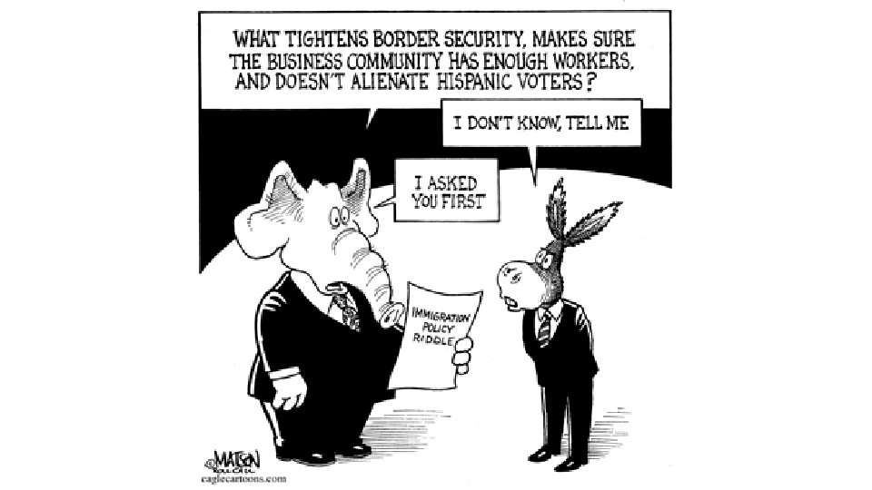Examples of Symbols Used in Political Cartoons • Peace – dove, olive branch, victory sign, scales of justice. • United States – Uncle Sam, flag, stars and stripes, shield, lady liberty. • Democrats – donkey. • Republicans – elephant. • Death – vulture, skeleton w/ shroud, skull and crossbones, grim reaper. • Love – heart, Cupid, Venus • Money – dollar bill or dollar sign.