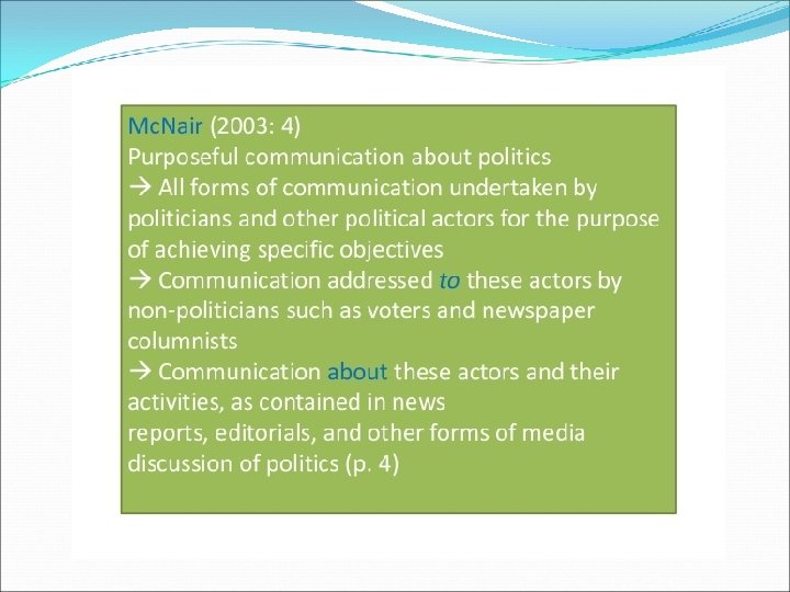 Why is Political communication so important? To link represented and representatives To explain and inform about decisions Ongoing process of horizontal and vertical discussion and feedback creates social cohesion around governance