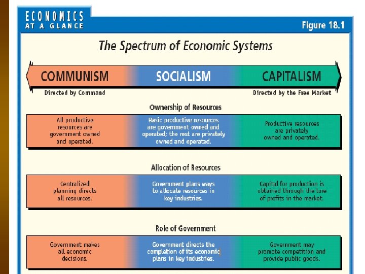 2. Communist — very strict control of economy n The Communist Party makes all of the decisions about: n what to produce n how much to produce n how to distribute the goods and services most decline in the long-run n no competition to make products more innovative or better n China & Vietnam are now allowing some free enterprise to boost their economy n