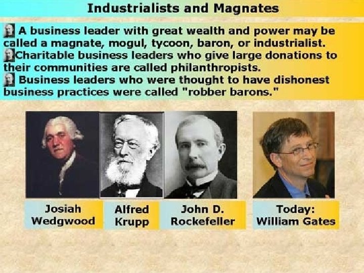 Robber Barons or Industry? n Cornelius Vanderbilt – railroads n n Titans of John D. Rockefeller – oil Andrew Carnegie – steel n J. P. Morgan – banking/finance