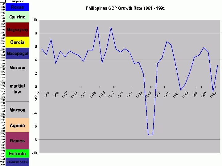 Lessons from Philippines • In 1950 s, best performer and most promising economy in East Asia • 1960 - 1997, lowest growth rate (1. 4% on average) in East Asia • two periods of negative growth – 1983 - 1986 and 1991 - 1992 – political turmoil and military coups