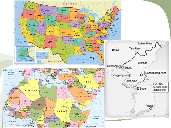 Geometric Borders • Can be straight line or curved boundaries • Totally unrelated to any aspects of the cultural or physical landscape • May follow lines of latitude/longitude • Examples: – North African nations – U. S. & Canada west of the Great Lakes – Western states of the U. S. – North Korea…sort of