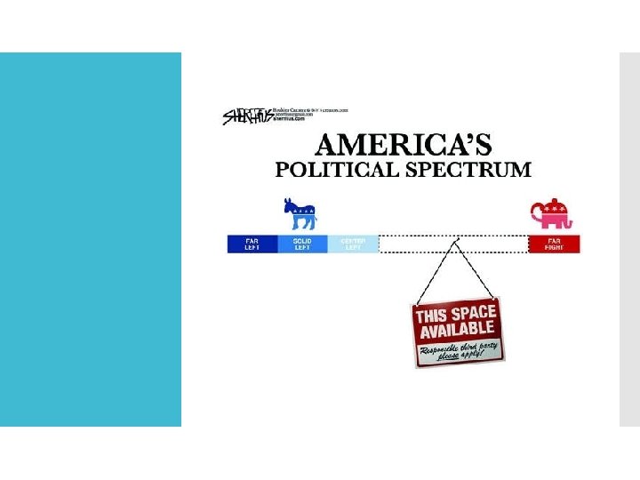 Two Party System Democrats • More Expansive view of the power of the Federal Government • Support raising and spending $$$$ to address Social Ills on a national level. • Favor Federal regulation to business practices Republican • Support limiting federal powers and protecting power of State and Local Government • Conservative approach to taxation and spending • Oppose Government interference with free enterprise