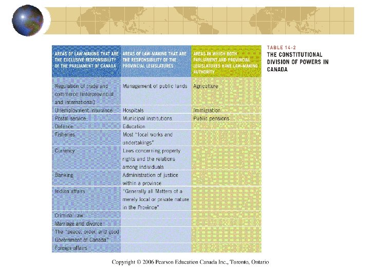 Federal government also has powers of: “Reservation”: Lieutenant Governor can send provincial legislation to federal cabinet for approval “Disallowance”: Federal cabinet can (in theory) veto provincial legislation In theory, Federal government should have had most power, but things have not really worked out that way. . Canadian federalism has gone through periods of centralization and decentralization