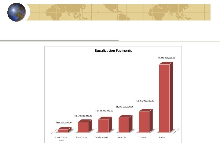Federal Government “transfer payments” to provinces 1. 2. General CHST transfers to support programs “Equalization”: A system of additional transfers to provinces that lack tax base to afford equivalent programs to “better off” provinces • Principle of Constitution Act (1982) • Transfers to “have not” provinces